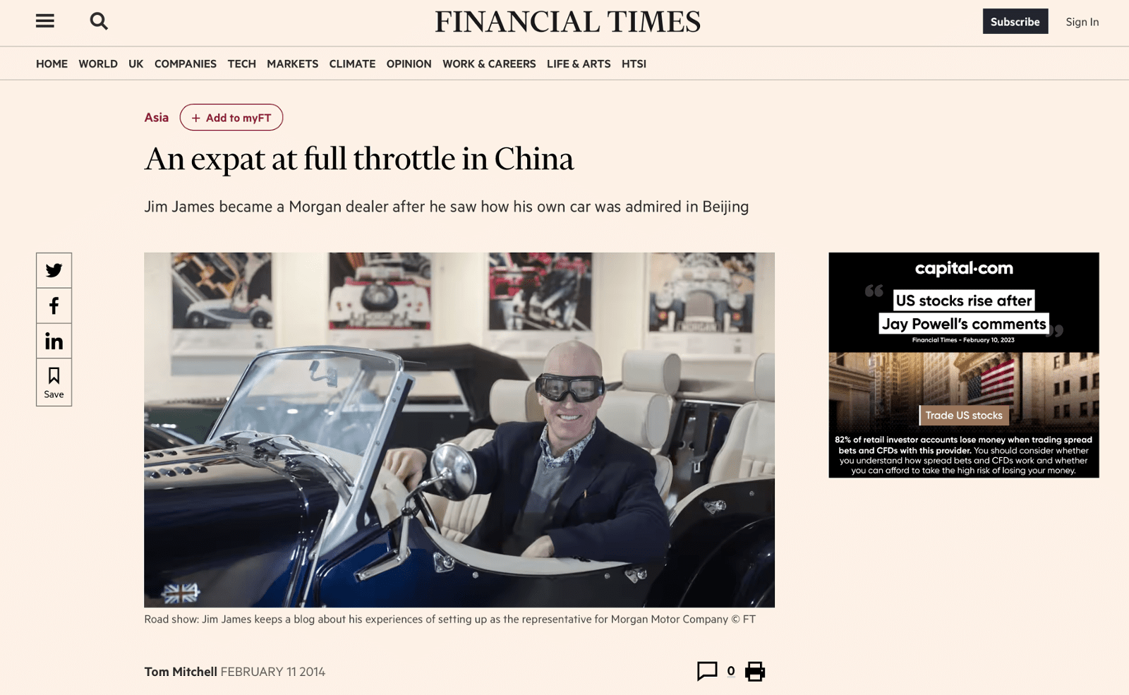Talking about importing Morgan cars to China, and the passion for British luxury brands in China.